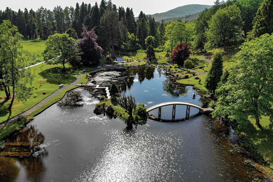 The Japanese Garden at Cowden near Dollar. View of the gardens seen from the castle towards Dollar town. Sleeps 7 4 bedrooms 2 bathrooms.